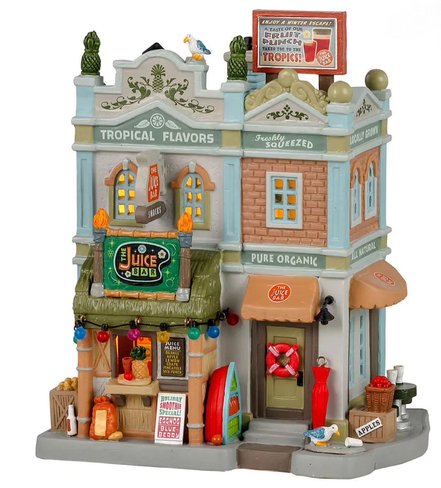 Le Juice Bar apporte une touche tropicale en plein hiver. Devant ce bâtiment en briques se trouve un bar à jus de fruits frais de style tiki où vous pourrez déguster toutes sortes de smoothies, de jus de fruits fraîchement pressés et, pour les plus audacieux, un smoothie myrtille-lait de poule ! Un panneau indique que tous les produits sont préparés avec des ingrédients biologiques. Vous pouvez entrer dans ce bâtiment illuminé ou simplement vous installer sur la terrasse latérale pour savourer votre boisson !
