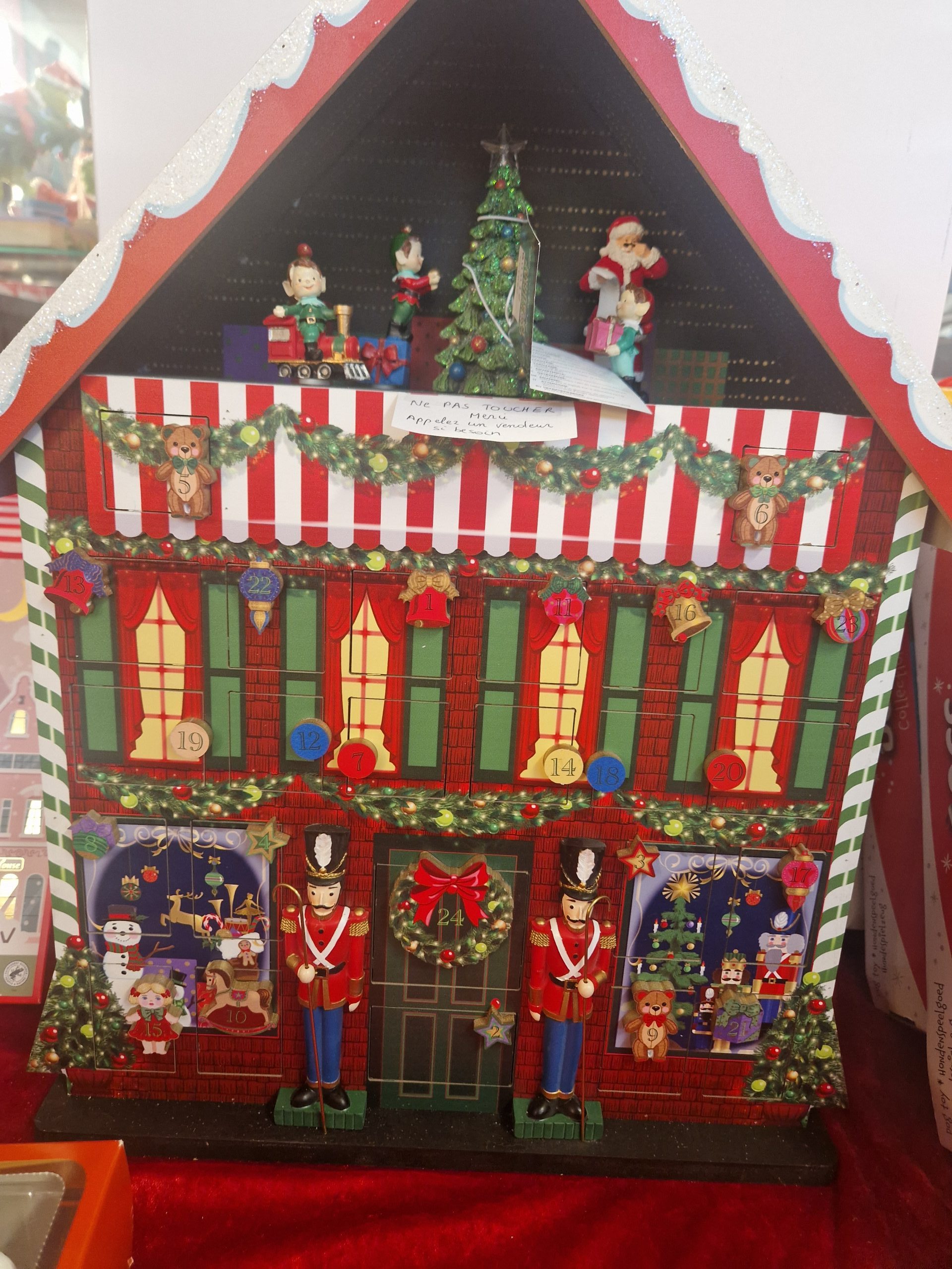 Calendrier de l’avent en bois, comportant 24 cases à remplir.